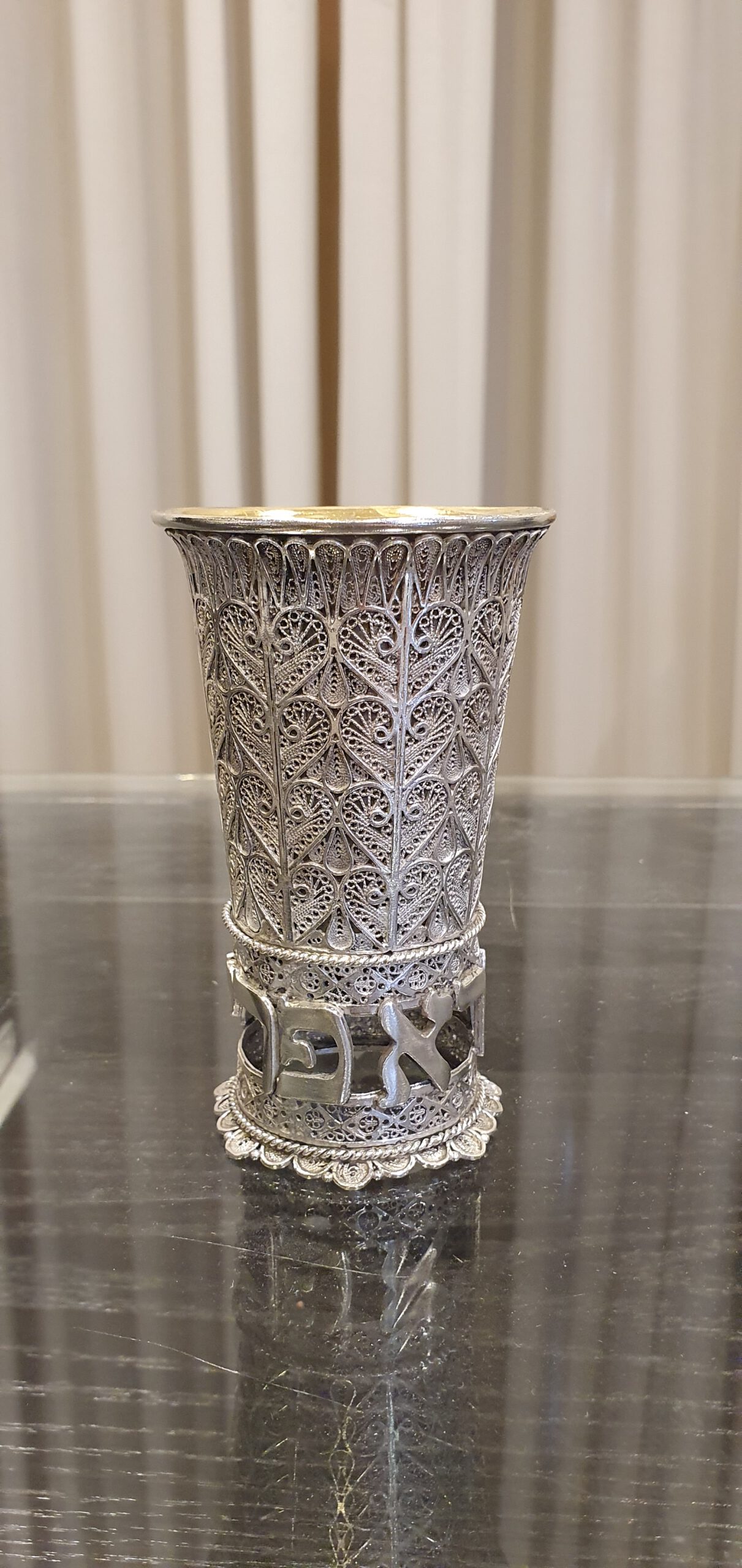 בעת יצירת גביע מכסף, חשבנו על כל פרט ופרט כדי להבטיח את האומנות היחודית שבעיצוב הכלי. התחושה החזקה של הכסף בשילוב עם הפיליגרן העדין והאלגנטי מיוצרים בהשראת הסגנון האומנותי האותנטי. המוצר שלנו הוא ללא תחרות בעיצובו ובאיכות הייצור שלו. גרשי אומנות בכסף הוא יותר ממקום שבו אפשר לקנות אמנות יפה. הוא פלטפורמה למעצבים שלנו שמבקשים ליצור הרבה יותר מעוד פריט יודאיקה נחמד למכירה. אנו מכניסים לכלי כסף שלנו אותנטיות, חדשנות, ויחודיות כדי לייצר מוצרים שנבדלים ממה שניתן למצוא בכל חנות כלי כסף. זה לא רק מכירת מוצרים כמו קנדלברות ופמוטים. אנו מחזיקים חזק באיכות גבוהה ובעיצובי פיליגרן מפוארים. אלו מוצרים שישמשו אתכם בהנאה לאורך שנים.