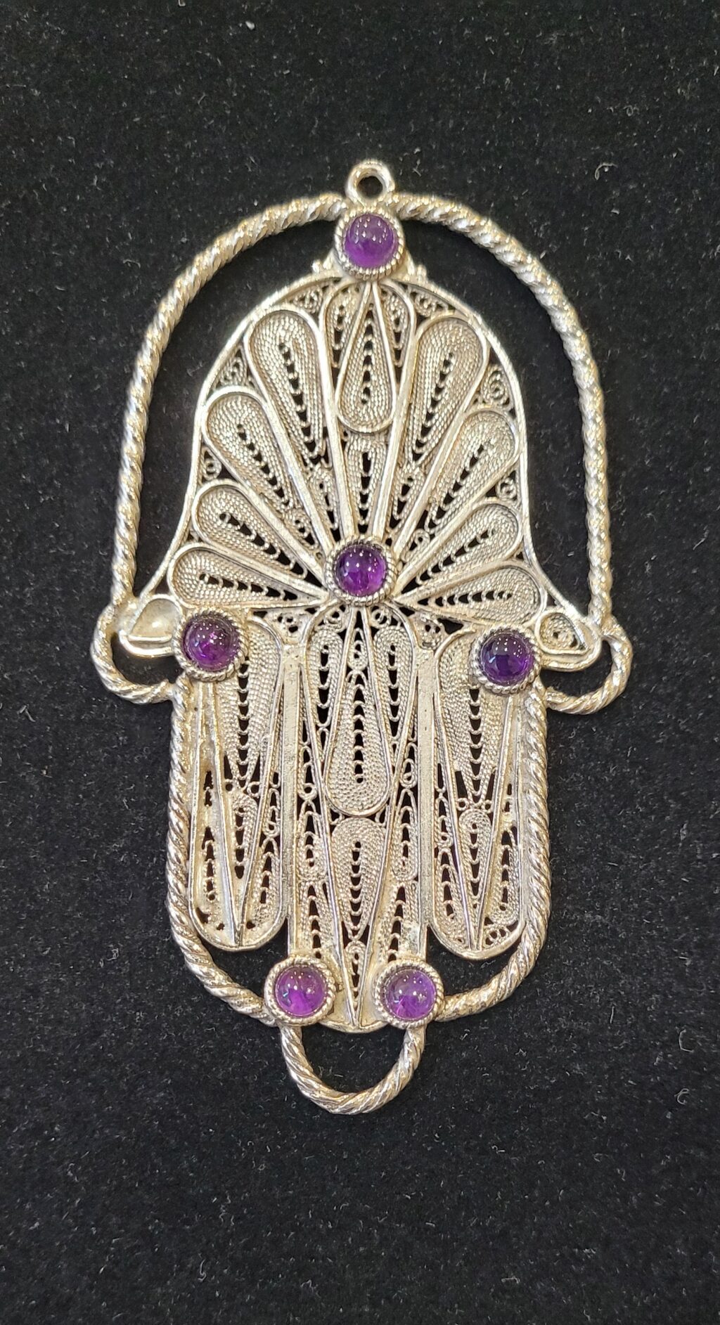 תליון חמסה משובץ באבן חן אמטיסט