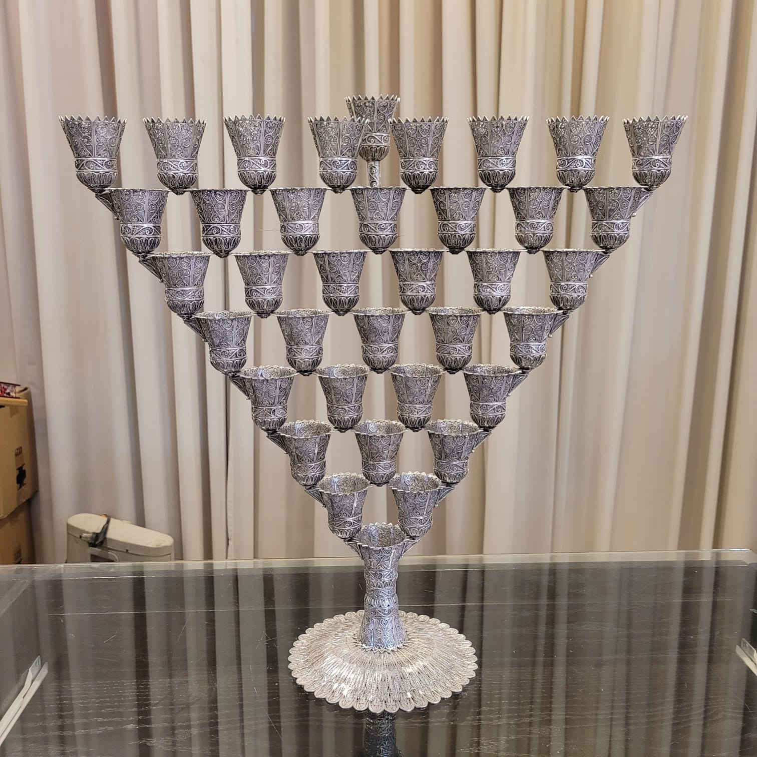 חנוכיה קונוסים ענקית מכסף טהור