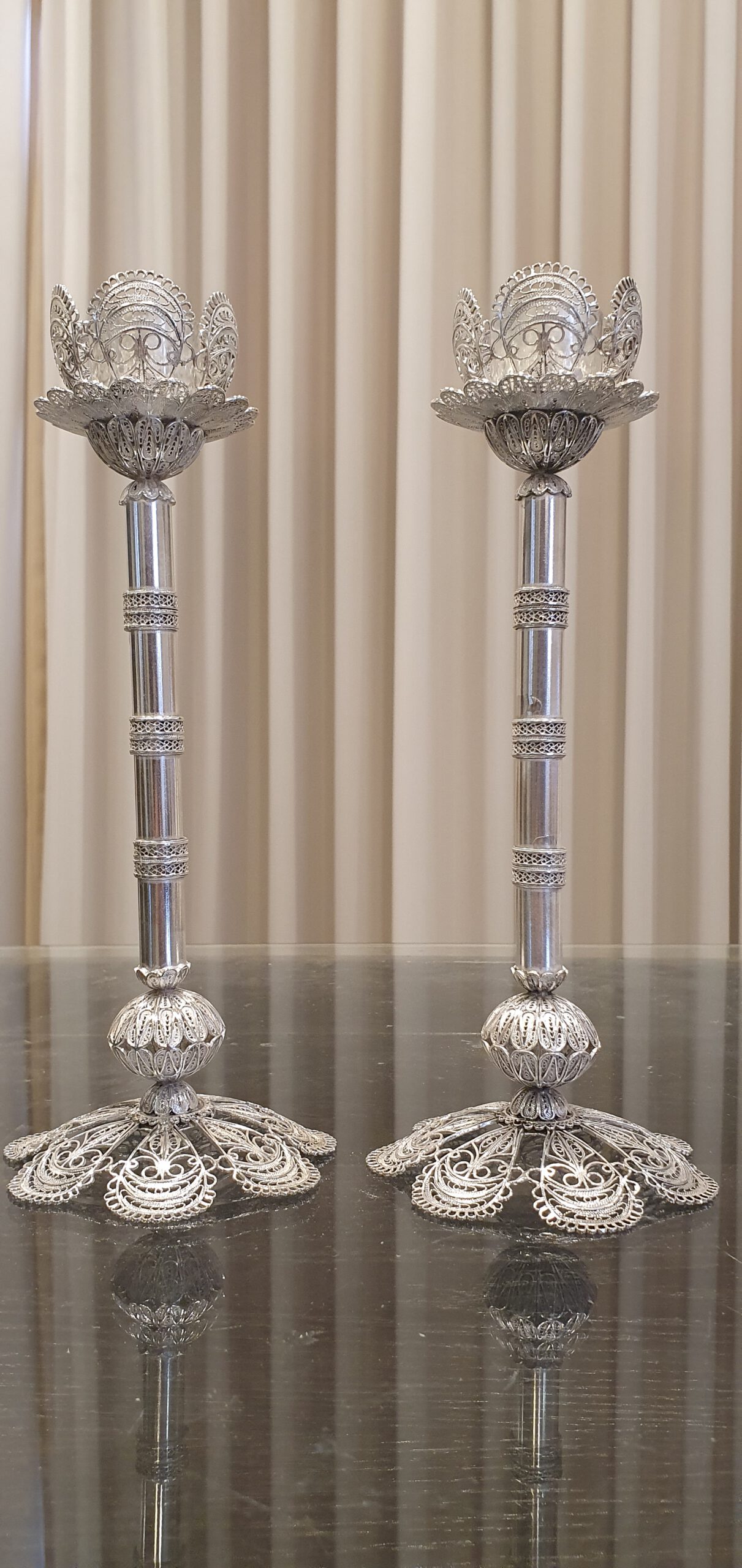 גרשי אומנות בכסף יצרני כלי הכסף והיודאיקה מציעים מבחר ענק של פמוטים מכסף טהור. פמוטים שמתאימים להדלקה בשמן, להדלקה בנרות עבים ולהדלקה בנרונים. אז אם אתם מחפשים פמוטים מכובדים מתנה לכלה או לאשה, או למתנה לבת מצווה תוכלו למצוא כאן מבחר פמוטים עשויים באומנות יחודית בעיצוב פיליגרן אותנטי והכל מכסף טהור. מעבר לקולקציית הפמוטים