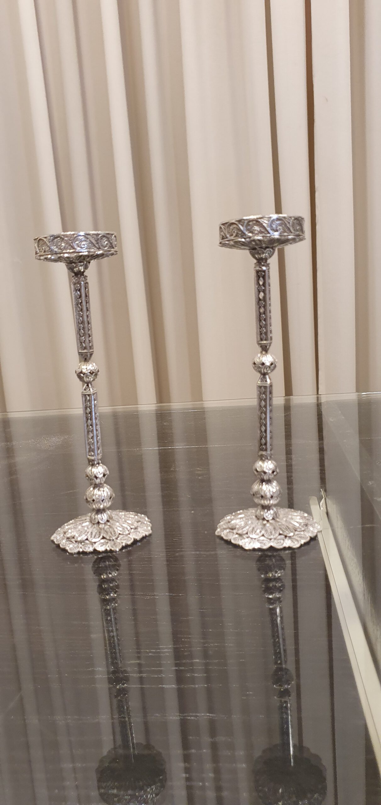 גרשי אומנות בכסף יצרני כלי הכסף והיודאיקה מציעים מבחר ענק של פמוטים מכסף טהור.  פמוטים שמתאימים להדלקה בשמן, להדלקה בנרות עבים  ולהדלקה בנרונים. אז אם אתם מחפשים פמוטים מכובדים מתנה לכלה או לאשה, או למתנה לבת מצווה תוכלו למצוא כאן מבחר פמוטים עשויים באומנות יחודית בעיצוב פיליגרן  אותנטי והכל מכסף טהור. מעבר לקולקציית הפמוטים