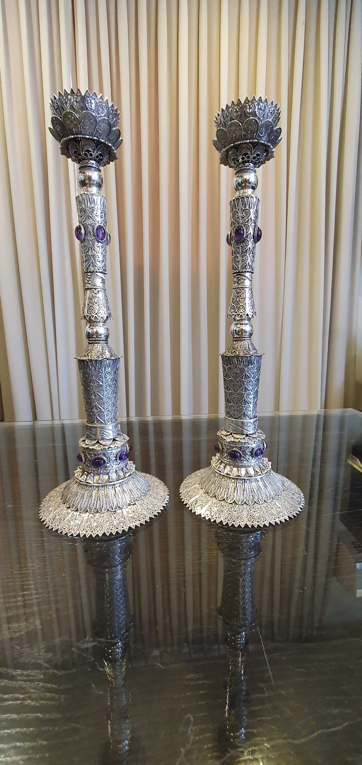 במפעל הבוטיק שלנו, אנו שואפים להביא לך את חוויית הקנייה המושלמת. כן, הקנייה באינטרנט כיום נהייתה יותר ויותר פופולרית וקלה. באתר שלנו, תוכלו למצוא את המוצרים הייחודיים שלנו ולרכוש אותם בקלות ובביטחה. עם מגוון האפשרויות לתשלום באמצעות כרטיסי אשראי מאובטחים, אנו מבטיחים לך כי הפרטים האישיים שלך יהיו מוגנים ושהעסקה תתבצע בצורה בטוחה ומאובטחת. בנוסף, אנו מאמינים באיכות ובשרות שלנו ולכן אנו מציעים מגוון אפשרויות למשלוח והחזרות אם הם נדרשים. אז בואו ובחרו את כלי הכסף והיודאיקה המועדפים עליכם והניחו לנו לטפל בשאר..גרשי אומנות בכסף יצרני כלי הכסף והיודאיקה מציעים מבחר ענק של פמוטים מכסף טהור. פמוטים שמתאימים להדלקה בשמן, להדלקה בנרות עבים ולהדלקה בנרונים. אז אם אתם מחפשים פמוטים מכובדים מתנה לכלה או לאשה, או למתנה לבת מצווה תוכלו למצוא כאן מבחר פמוטים עשויים באומנות יחודית בעיצוב פיליגרן אותנטי והכל מכסף טהור. מעבר לקולקציית הפמוטים