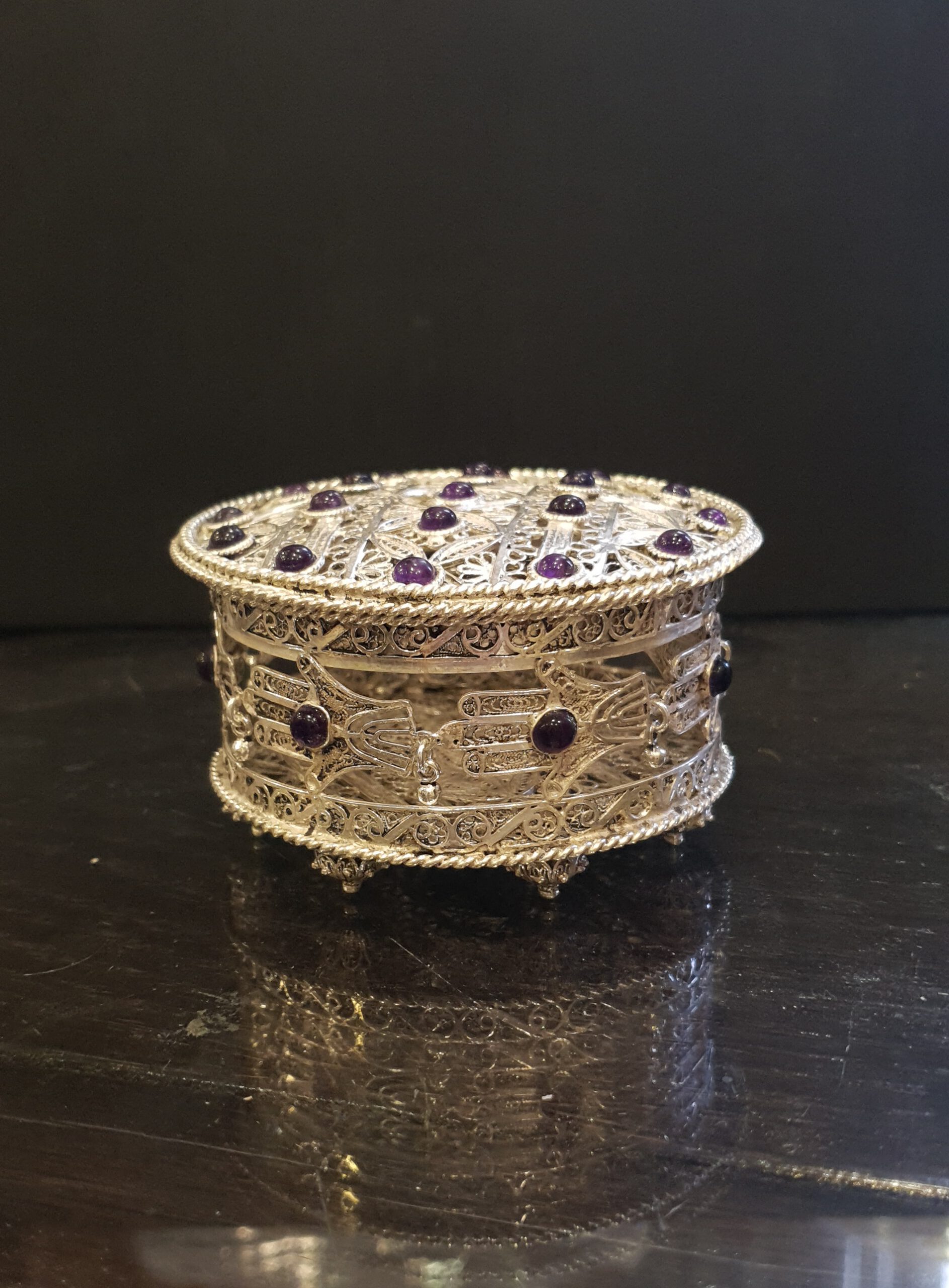 קופסאות קטנות עשויות כסף טהור בעיצוב אומנותי , בשיבוץ אבני חן לפי בחירה. החל מ – 300 שקלים. קופסה מכסף טהור מתאים לאכסון, לנוי , למי שמחפש מתנה מכסף יוקרתית . לקופסאות אטומות יש להכנס לקטגוריה של קופסאות לטבק