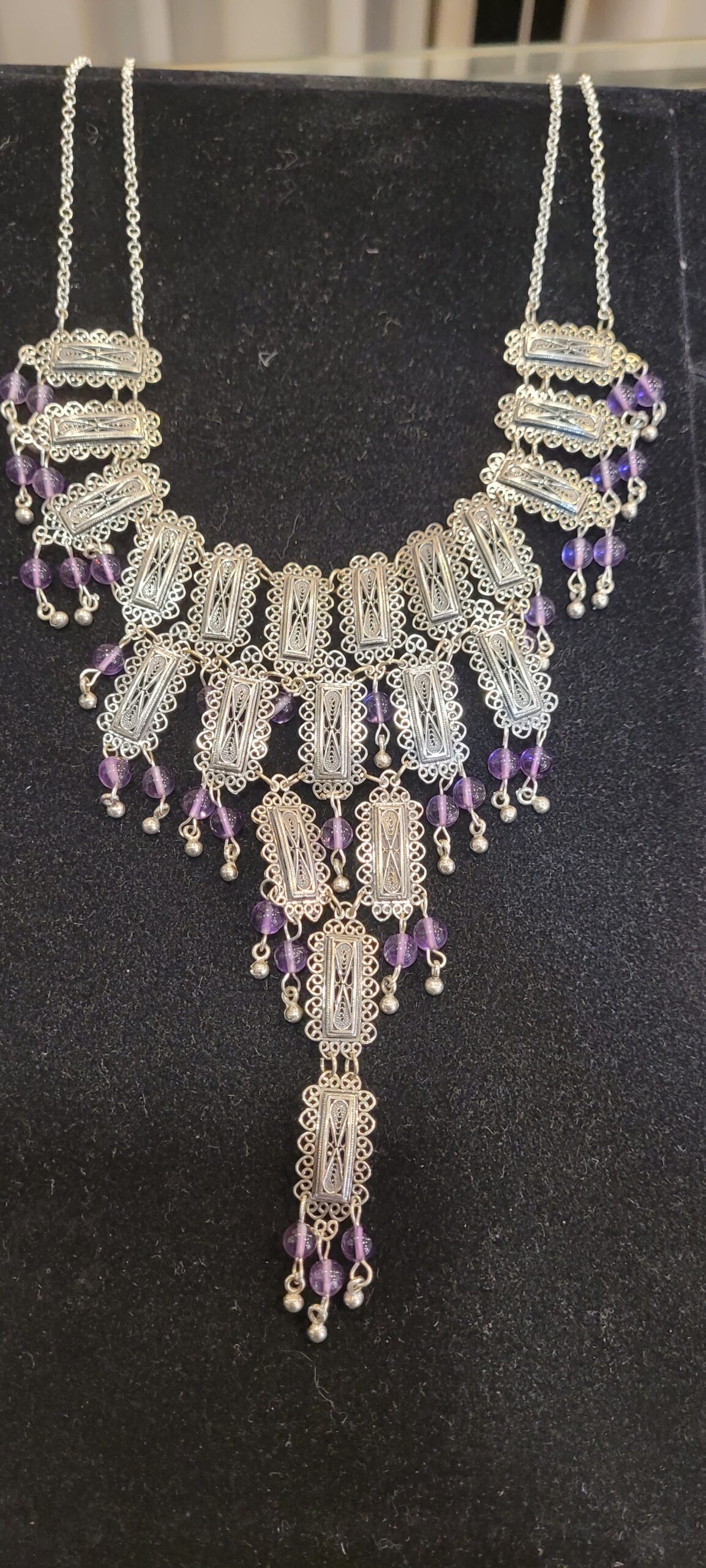 שרשרת כסף בשילוב חרוזי אמטיסט